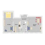 تضمّ الشقة الفناء ومنطقة الجلوس، وتحتوي على الصالون ووسائل راحة عصرية مثل جهاز التلفزيون وتلفزيون بشاشة مسطحة مع قنوات فضائية. يحتوي الحمام على المرحاض المنفصل والدوش، بالإضافة إلى مجفف الشعر وملاءات الحمام.